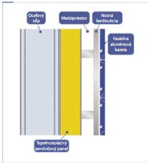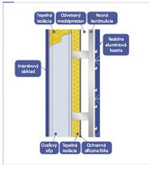 Fasádu možno realizovať ako odvetranú. Odsadením exteriérového plášťa objektu od hlavnej obvodovej steny vzniká medzi ňou a alumíniovou fasádou medzipriestor (obr. 8, 9, 10).