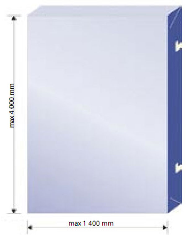 Rozmery kaziet sa navrhujú tak, aby sa dosiahol optimálny roznos zaťaženia. Šírka kaziet je od 300 do 1 400 mm a dĺžka kaziet je od 1 200 mm do 4 000 mm. Maximálny rozmer kazety je 1 400 mm × 4 000 mm (obr. 5, 6).