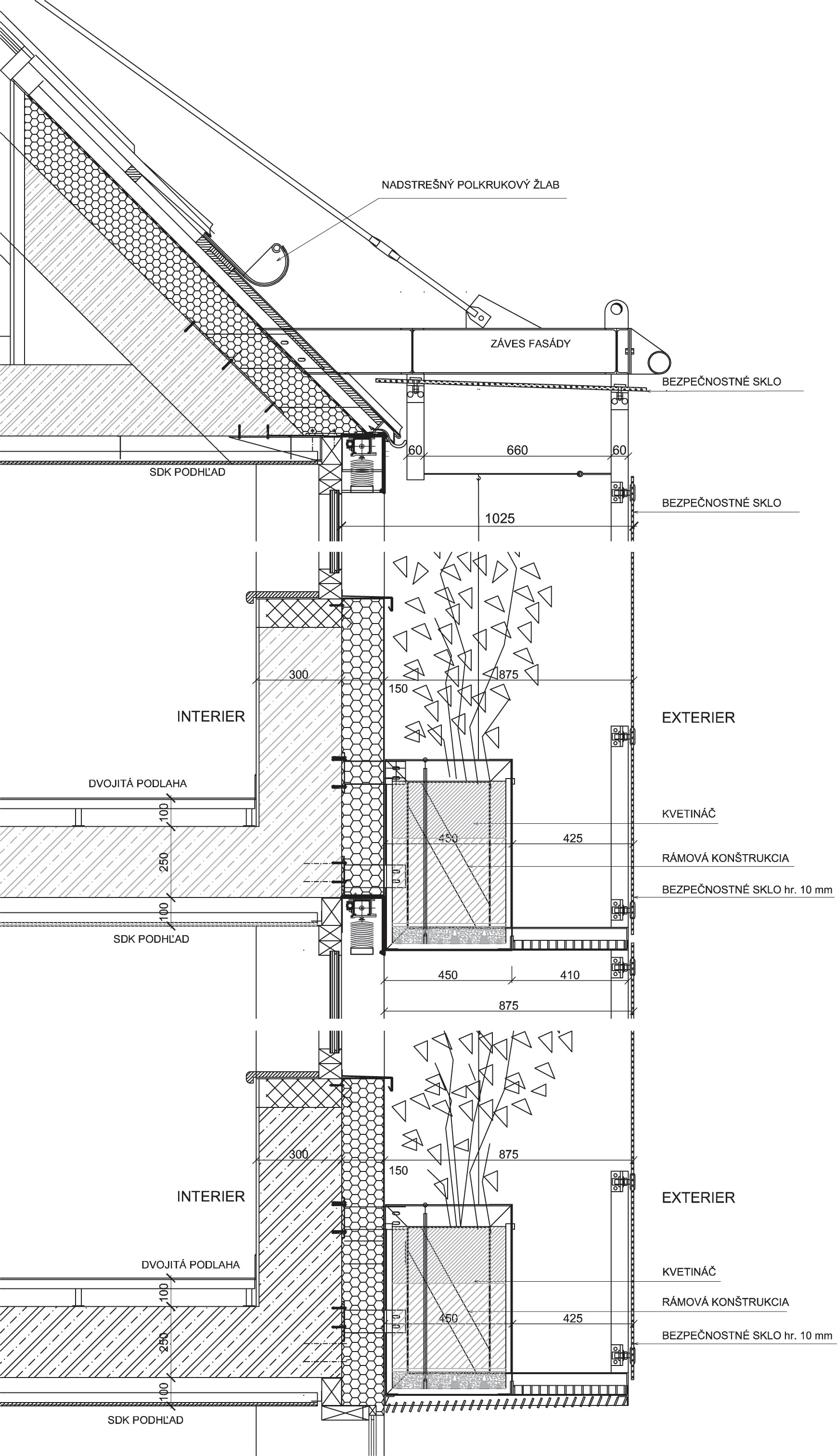 Detail dvojitej prevetrávanej fasády administratívnej budovy Wallenrod