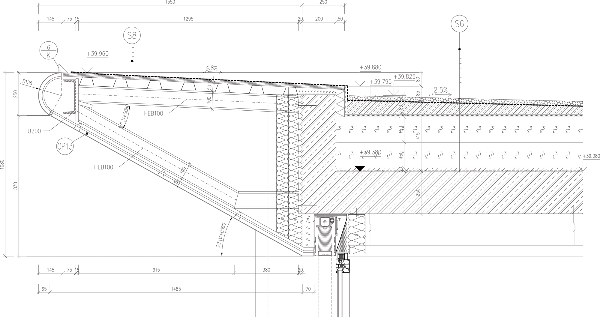 Ukončenie strechy na severnej a južnej fasáde S8Náter proti UV žiareniu Conipur TC 459 RAL 9006Hydroizolačná membránaDoska OSB s hrúbkou 18 mmOceľový pozinkovaný plech s hrúbkou 0,8 mm, výška vlny […]