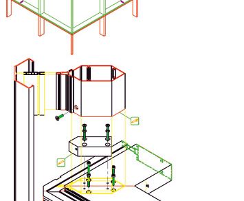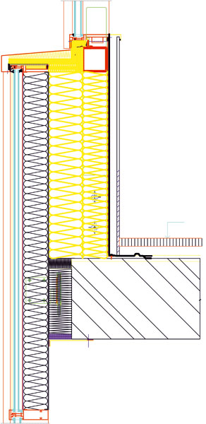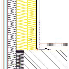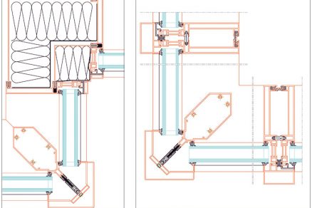 | Zvislý rez parapetnou časťou | Axonometria vodorovného spoja v uhle 90° |
