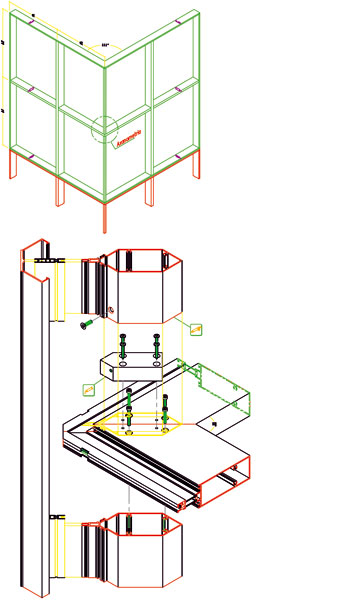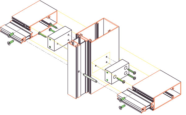 „Elementárna fasáda sa odlišuje od bežnej stĺpikovo-priečnikovej fasády v tom, že sa jednotlivé segmenty vyrábajú v dielenskej kvalite už v dielni a potom sa hotové – zasklené a vybavené všetkými tesniacimi prvkami a pripravenými kotvami – prevážajú na stavbu. Tam sú priamo v stavebných konštrukciách pripravené tzv. protikusy stavebných kotiev,“ vysvetľuje Július Čajda, technický konzultant spoločnosti Hydro Building Systems, ktorá dodáva hliníkový konštrukčný systém Wicona. Montáž fasády realizovala česká spoločnosť Mechanika Prostějov. Na budove sa použilo osem druhov novovyvinutých profilov, napríklad rohový a rámový a priečnikový profil či zasklievacia lišta.
