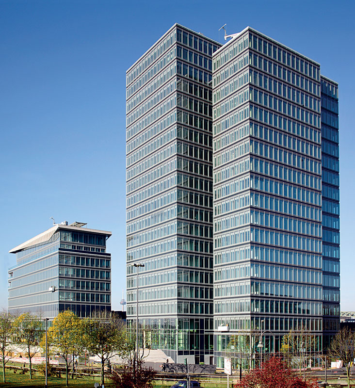 Súbor stavieb pozostávajúci z výškových budov, ktorý leží na pravom brehu Rýna, vytvára obraz mesta. Na obidvoch stavebných objektoch sa pôvodná fasáda nahradila fasádnym systémom bez viditeľných okenných krídiel a so skrytým kovaním, ktorý sa stará o architektonicky celistvý, moderný vzhľad.