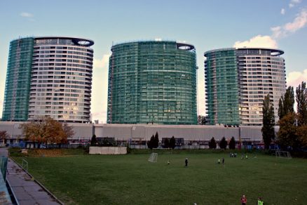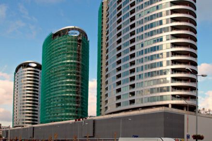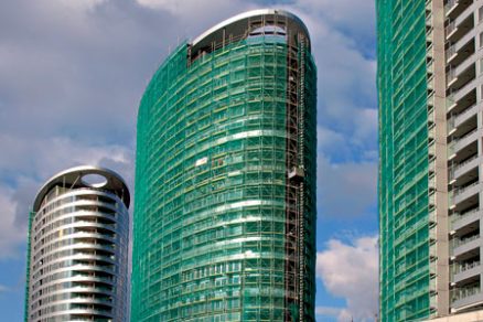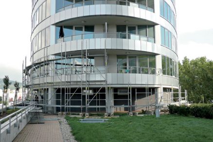 Použitie fasádneho lešenia vo veľkých objemoch si vyžiadala oprava fasádnej konštrukcie objektu Tri veže (obr. 1 až 3), nachádzajúceho sa v bratislavskej mestskej časti Nové Mesto. So stavbou lešenia sa začalo v októbri 2010.