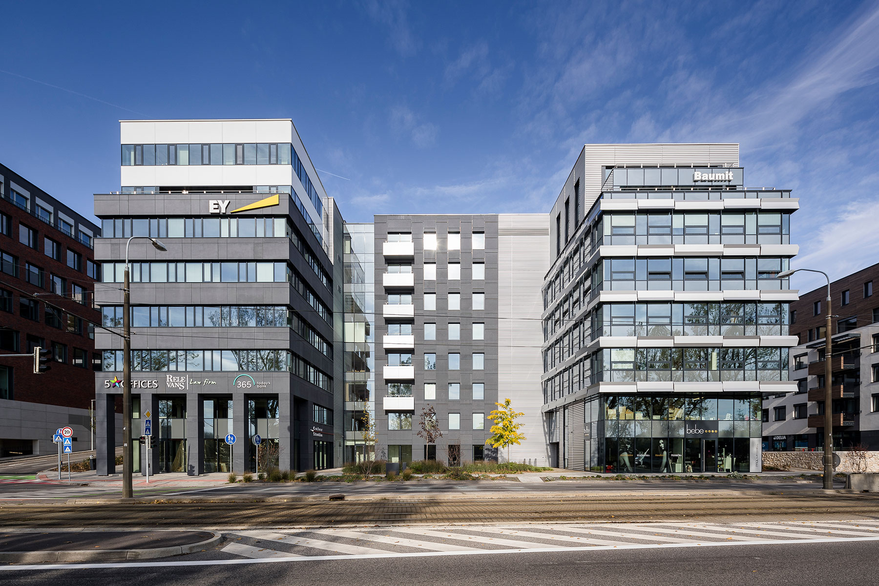 V architektúre administratívnych či polyfunkčných budov nastáva odklon od tradičných fasád k dynamickému stvárneniu stavby kombinovaním viacerých materiálov, povrchov a farebných variácií. Originálny vzhľad vláknocementového obkladu EQUITONE umožňuje stavbe vyčnievať z okolia, a tým sa odlíšiť od konkurencie a stať sa dlhodobo zapamätateľnou.