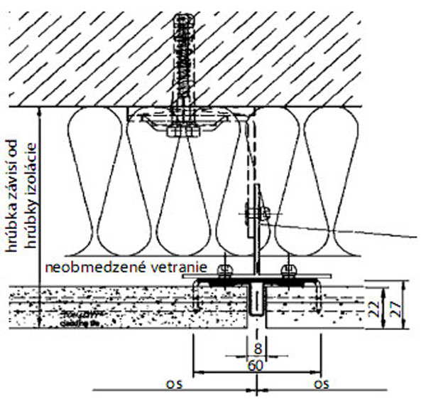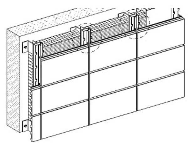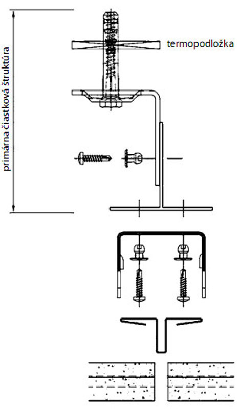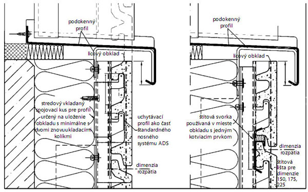 | Obr. 3 Nosný raster keramickej fasády | Obr. 4 Systém kotvenia keramického obkladu na fasádu |