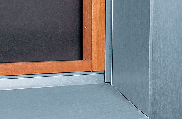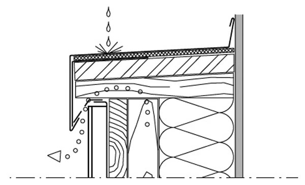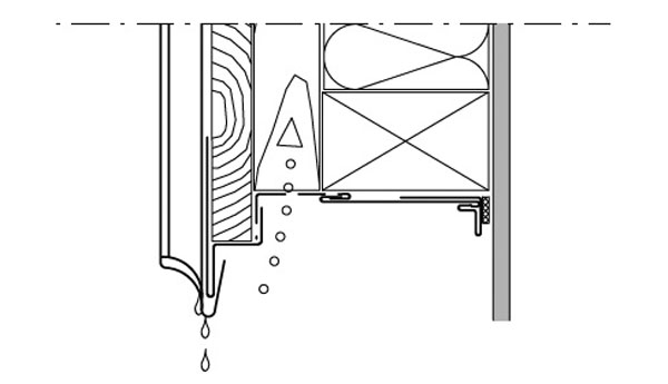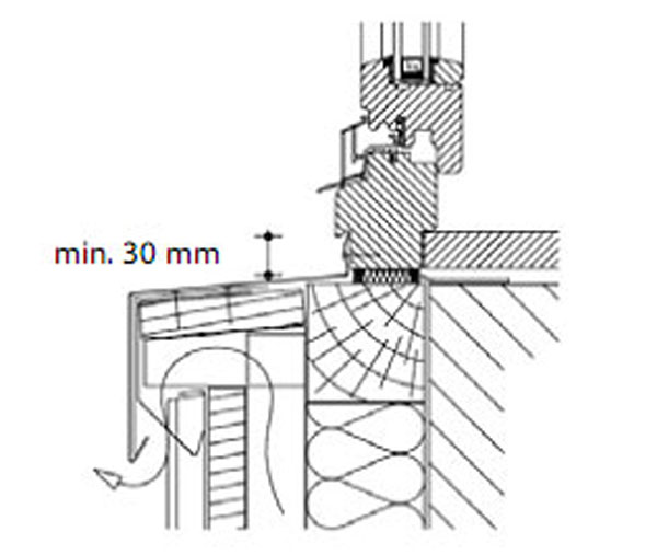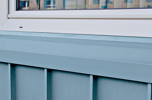 Príprave konštrukčných detailov metalického opláštenia je nutné venovať dostatočnú pozornosť. Majú vplyv nielen na správne vyhotovenie klampiarskych detailov, ale rozhodujúcim spôsobom ovplyvňujú realizáciu celej skladby obvodového plášťa, a hlavne tesárskych konštrukcií. Pri podcenení uvedenej prípravy nemožno očakávať, že finálnou vrstvou, teda plechom s hrúbkou 0,8 mm, bude možné zakryť nedostatky, ktoré vznikli pri vyhotovení podkladných konštrukcií. Medzi základné detaily patrí detail úpätia (obr. 4), detaily okolo prestupov cez opláštenie – parapet (obr. 5), bočné ostenia (obr. 6) a nadpražie (obr. 7), detail riešenia rohov (obr. 8) a napojenia opláštenia na atiku objektu. Charakteristickým znakom predmetného systému je možnosť riešiť každý detail viacerými spôsobmi. Systém zároveň umožňuje nepriame kotvenie viditeľných klampiarskych dielov bez priznaného skrutkovania alebo klincovania, čo má podstatný vplyv na životnosť a estetiku systému. V rámci korektného servisu výrobcu materiálu treba pripravené konštrukčné detaily pred začatím prác dôsledne vysvetliť všetkým zúčastneným stranám, to znamená vedeniu stavby, remeselníkom – tesárom, klampiarom a stavebnému dozoru.