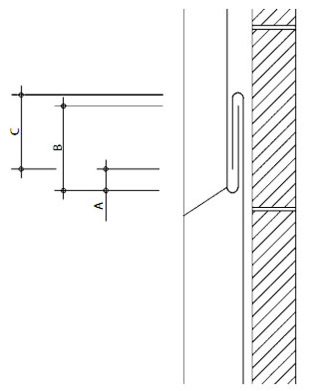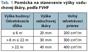 Opláštenie na uhlovú stojatú drážku (ďalej skratka USD) sa rieši ako zozadu odvetraná zavesená fasáda. Pri návrhu treba myslieť na dostatočne širokú a hlavne priebežnú vzduchovú medzeru. Voľný prierez ventilačnej medzery medzi opláštením fasády a za ňou ležiacou vrstvou musí byť minimálne 20 mm (tab. 1).