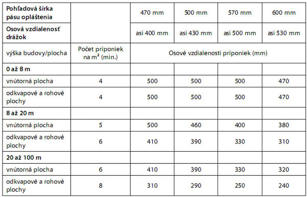 Tab. 2 Počet príponiek v závislosti od výšky budovy a polohy pásu opláštenia