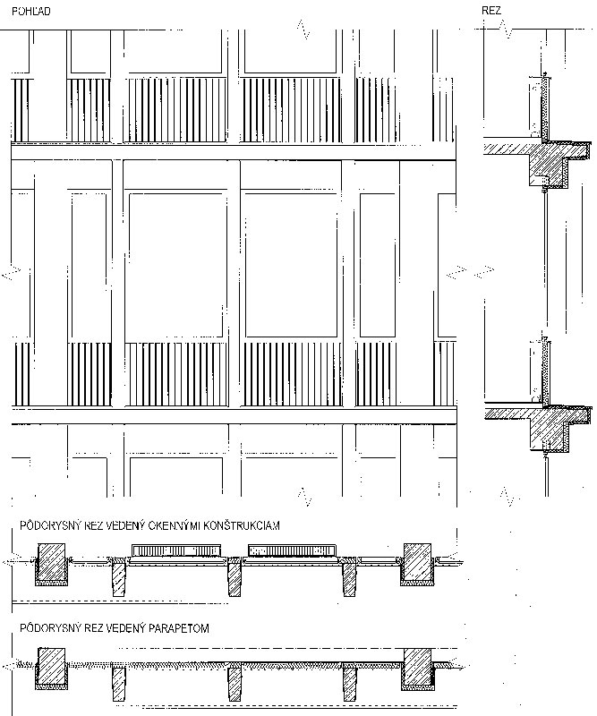 Obr. 11 Detailné riešenie modernizovanej fasády Stavebnej fakulty STU v Bratislave (blok A) – horizontálny rez fasádou