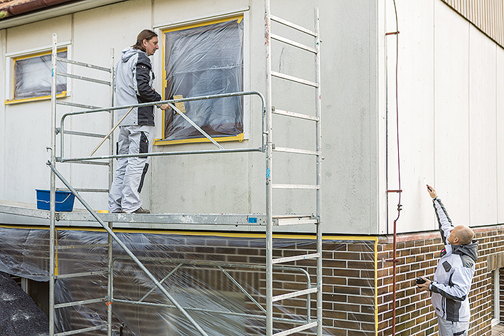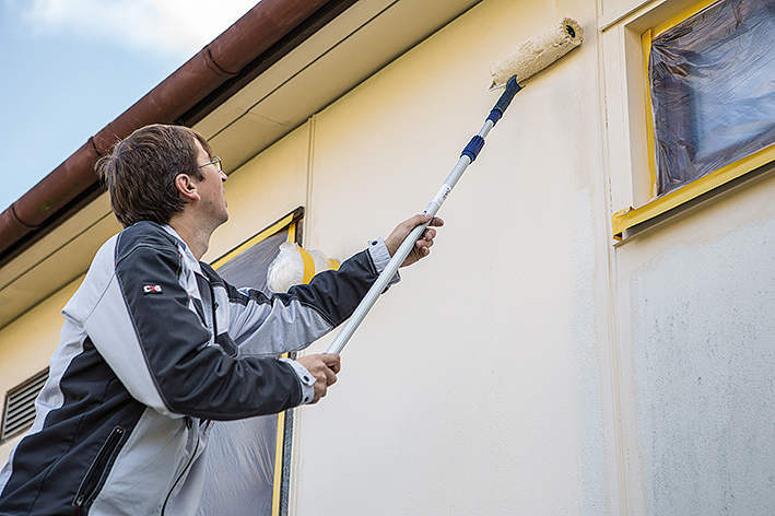 Okná, dvere a ďalšie miesta, ktoré sa nebudú ošetrovať renovačnou fasádnou farbou, sa zakryjú maliarskou fóliou a oblepia maskovacími páskami.