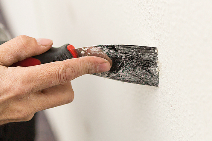 Pôvodné nátery, nepriľnavé nátery alebo ich časti sa dôkladne odstránia obrúsením, oškrabaním, prípadne umytím prúdom tlakovej vody. V blízkosti trhlín sa dôkladne odstráni odlupujúci sa starý náter a väčšie trhliny sa opravia akrylátovým tmelom. Murárske opravy (odpadnutá omietka) sa vykonajú klasickým spôsobom.