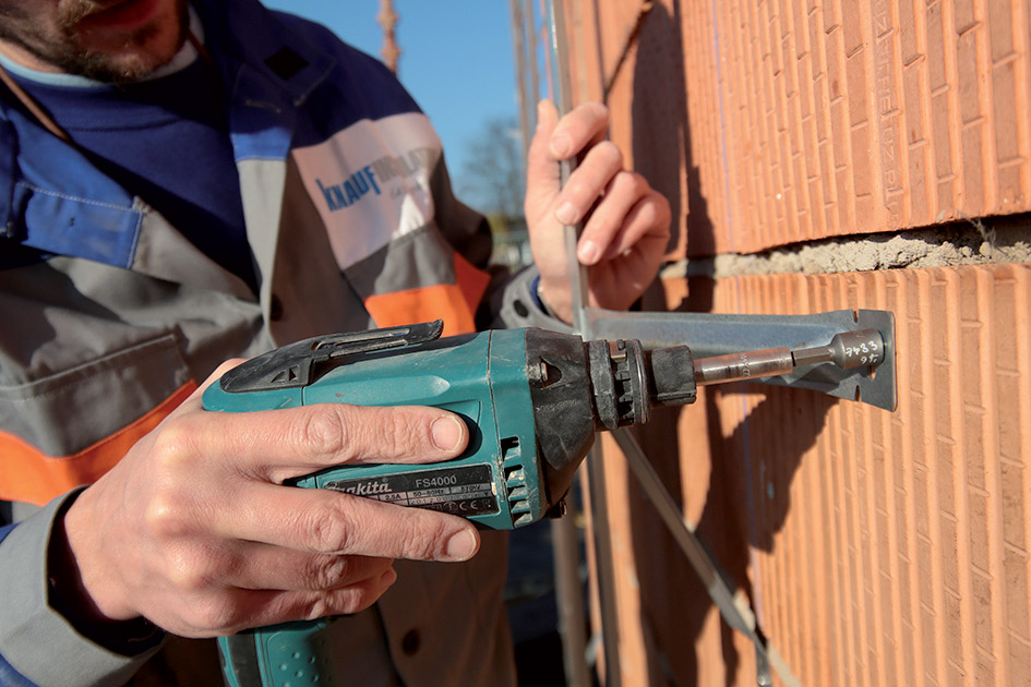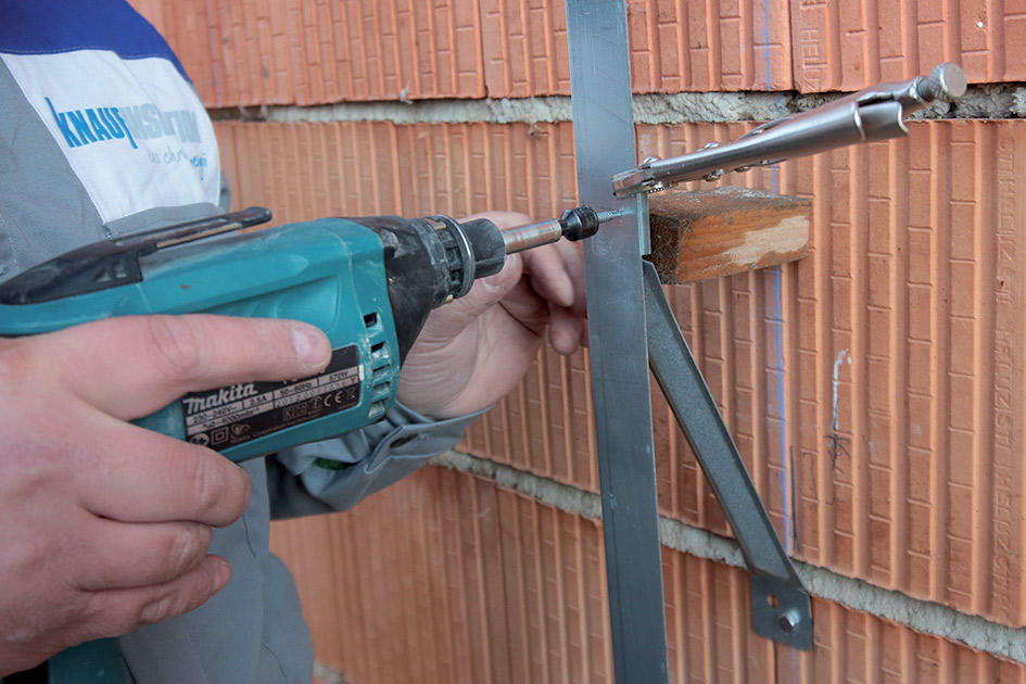 Priečne stužujúce prvky sa najskôr spoja s L-profilom a až potom sa zakotvia do steny.