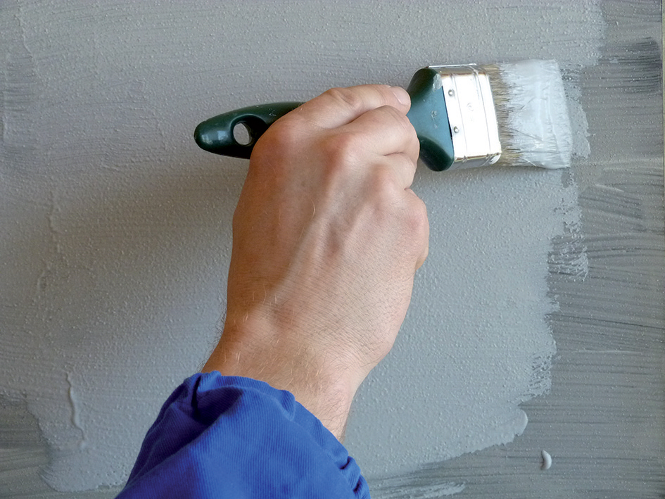 Na napenetrovaný hladký podklad je potrebné naniesť neriedený, riadne rozmiešaný kontaktný mostík v dvoch vrstvách v odtieni požadovanej farby škáry. Kontaktný mostík sa aplikuje valčekom alebo štetcom a nechá sa vyschnúť (približne 12 h). Kontaktný mostík vytvorí na povrchu jemnozrnnú štruktúru. Štruktúrované podklady je potrebné vyrovnať stierkou.