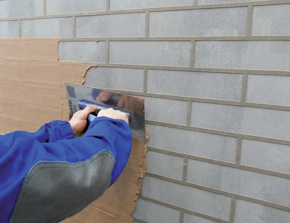Imitácia obkladu z tehál použitím kreatívnej omietky