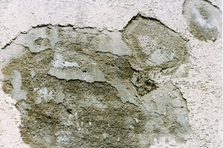 Obr. vľavo: Neúspešná sanácia omietky s disperznou povrchovou úpravou