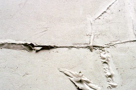 Obr. hore: Neúspešná sanácia omietky s disperznou povrchovou úpravou. V dôsledku napúčania zapríčineného vlhkosťou sa v mieste sanovaných trhlín vytvorili vyduté plochy a povrchová úprava sa odlúpla.