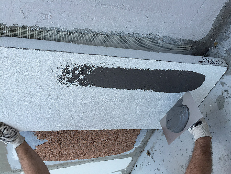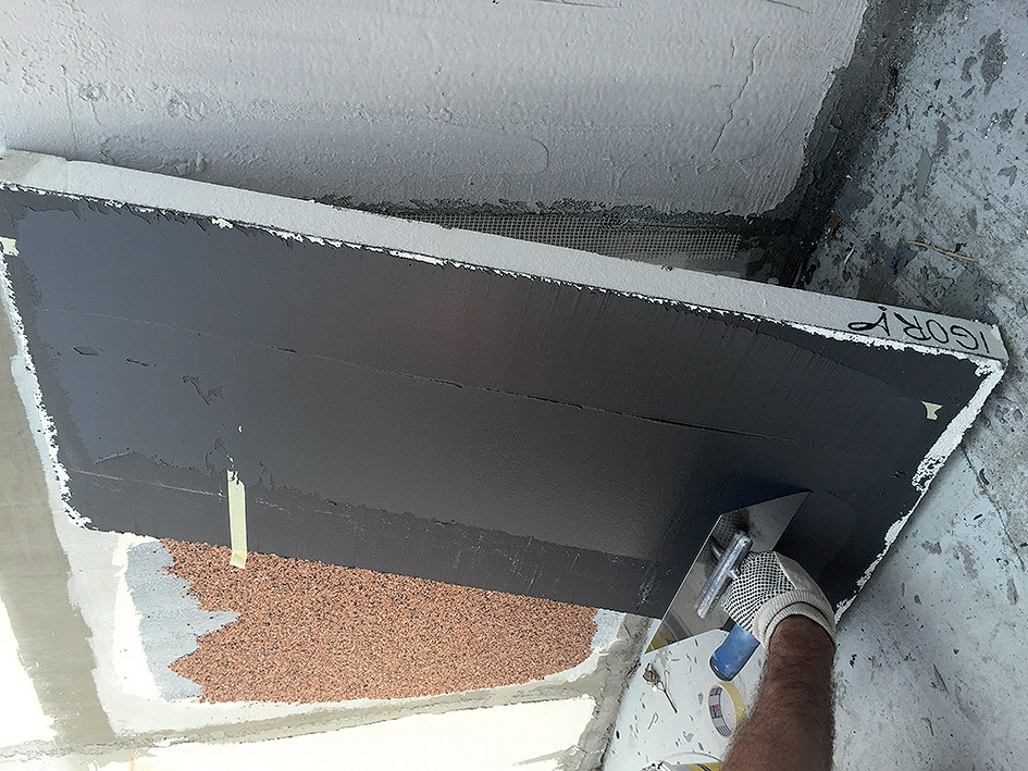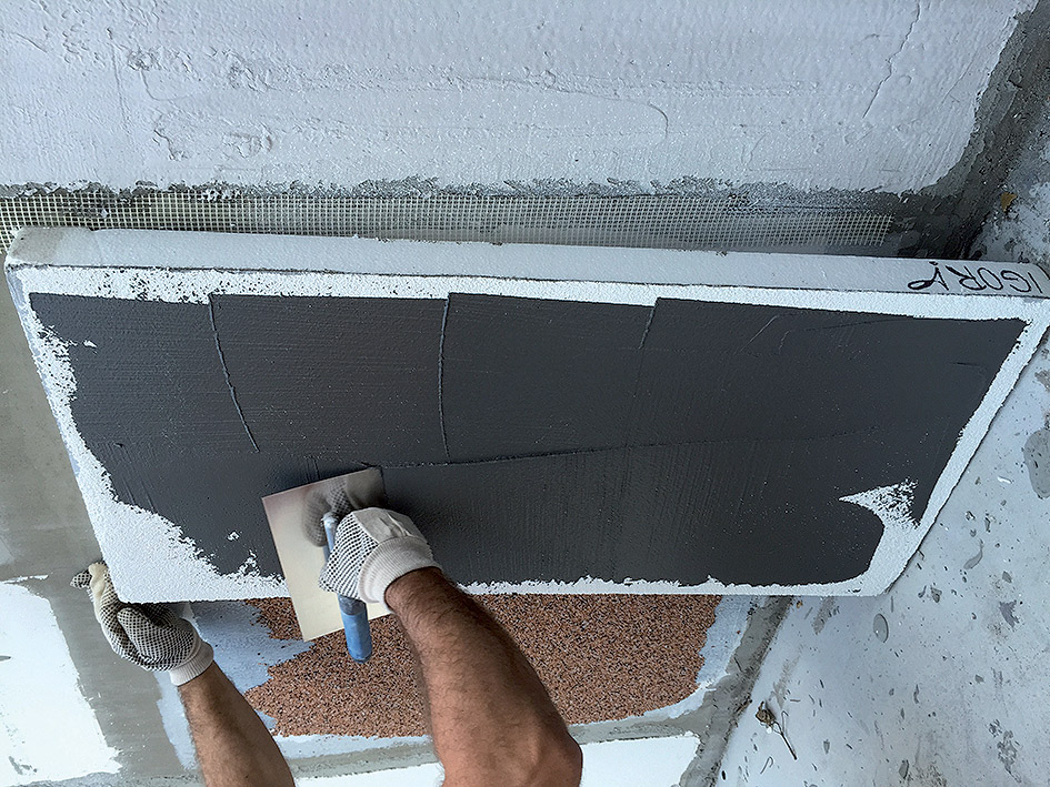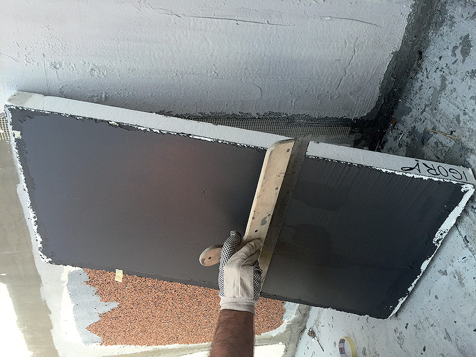 Na vytvorenie betónového vzhľadu fasády je možné použiť dekoratívnu omietku. Omietku možno nanášať na rôzne minerálne podklady (betón, stierky, minerálne omietky) alebo na kontaktný tepelnoizolačný systém ETICS.