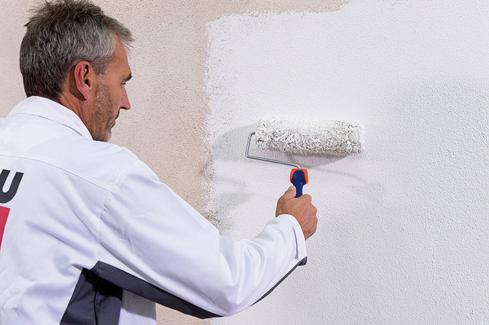 Bezprostredne pred nanášaním sa spevňujúci náter dôkladne premieša. Na vyzretý a suchý podklad sa nanáša celoplošne striekacím zariadením, pričom je potrebné postupovať zdola smerom hore až do nasýtenia povrchu fasády. Menšie plochy je možné natierať pomocou valčeka alebo maliarskej štetky, rovnomerne bez prerušenia. Pri aplikácii spevňujúceho náteru sa odporúča používať ochranné rukavice. Po nanesení spevňujúceho náteru nasleduje technologická prestávka minimálne 14 dní (platí pre teplotu vzduchu +20 °C a relatívnu vlhkosť vzduchu ≤60 %. Nižšie teploty a vyššia vzdušná vlhkosť technologickú prestávku výrazne predlžujú.). Následne je možné naniesť vhodnú povrchovú úpravu.