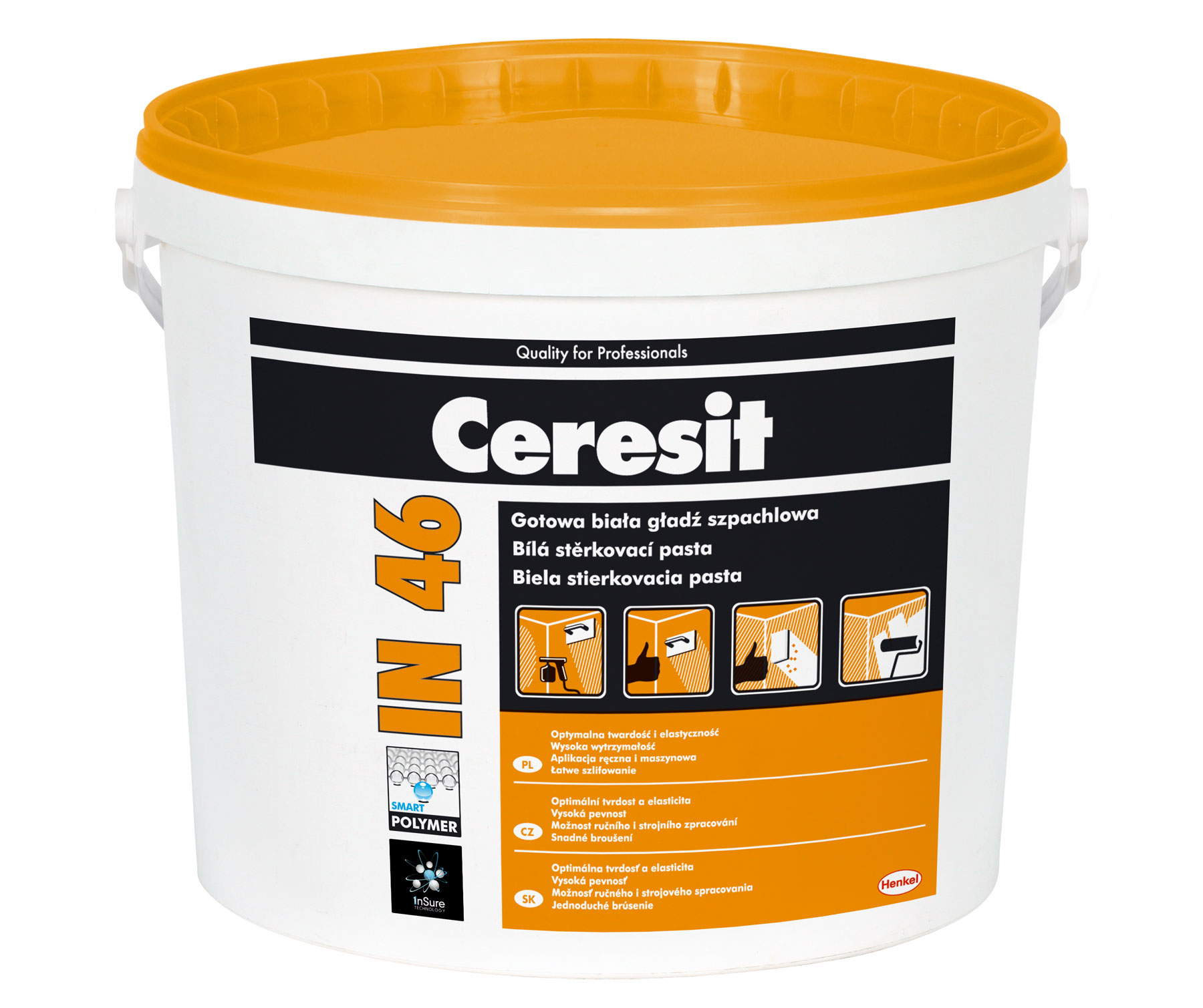 • Insure technológia u stierok Ceresit IN 35, IN 45 a IN 46 zaručuje optimálnu tvrdosť, vysokú odolnosť a vynikajúcu priľnavosť k povrchu