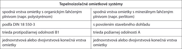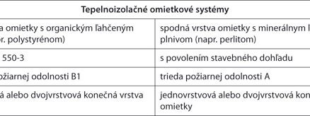 Tab. 1: Prehľad tepelnoizolačných omietkových systémov