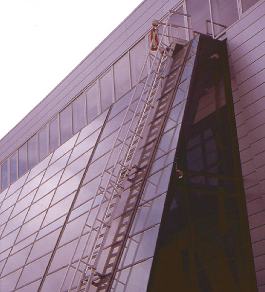 Ľahké hliníkové posuvné rebríky alebo špeciálne plošiny a lávky, ak sú mimo prevádzky, dajú sa často umiestniť tak, že môžu tvoriť výrazný estetický doplnok budovy alebo jej časti (svetlíka, átria).