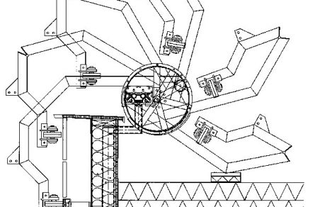 Teleskopický strešný vozík sa prevádzkuje na dvoch koľajniciach a je na ňom zavesená klietka pre jedného operátora, prípadne závesná plošina pre dvoch operátorov. Vzhľadom na to, že jeho teleskopické rameno je v čase mimo prevádzky skryté za atikou, toto zariadenie je z nulovej úrovne neviditeľné.