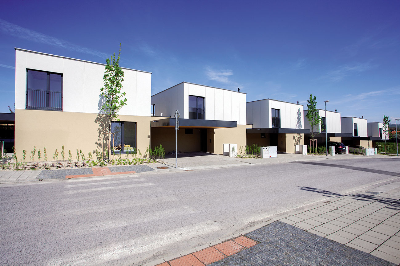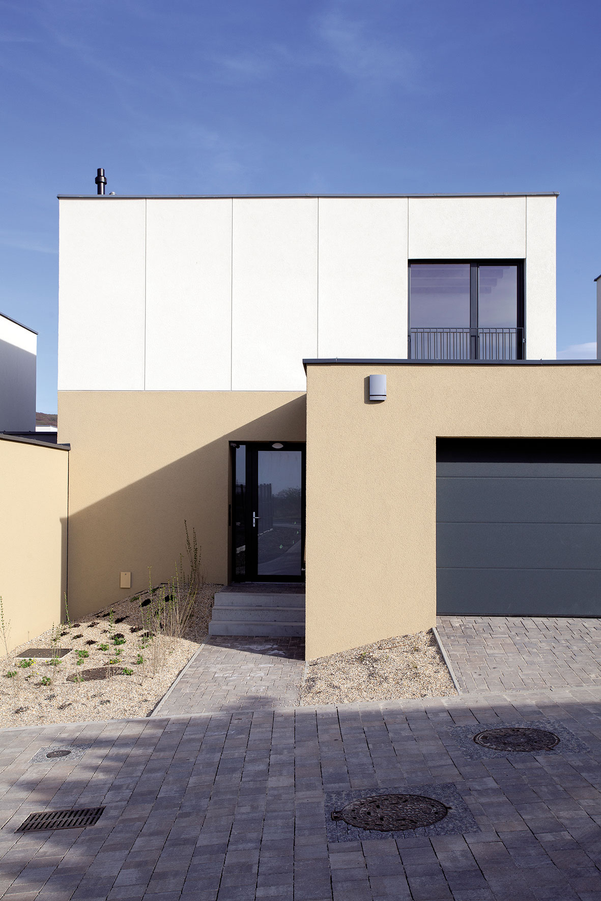 Systém Baumit Pro ponúka kvalitu, ochranu fasády a príjemnú vnútornú klímu. Spája v sebe dlhoročné skúsenosti a izolačné vlastnosti s optimálnym pomerom ceny a kvality. Pri výstavbe viacerých rodinných domov, akou bola aj realizácia radových domov v Záhorskej Bystrici, predstavuje tento systém profesionálne riešenie. Lepiaca malta v systéme je pružná, odolná proti poveternostným vplyvom, vhodná na použitie v bežných podmienkach počas realizácie i celej životnosti. Povrchová úprava omietkou Baumit SilikatTop v dvoch zrnitostiach a v rôznej, ale vyváženej farebnosti (spolu s drážkovaným profilom) sa postarala o vytvorenie kontrastu. Táto realizácia získala v súťaži Baumit Fasáda roka 2015 hlavnú cenu v kategórii Rodinný dom.