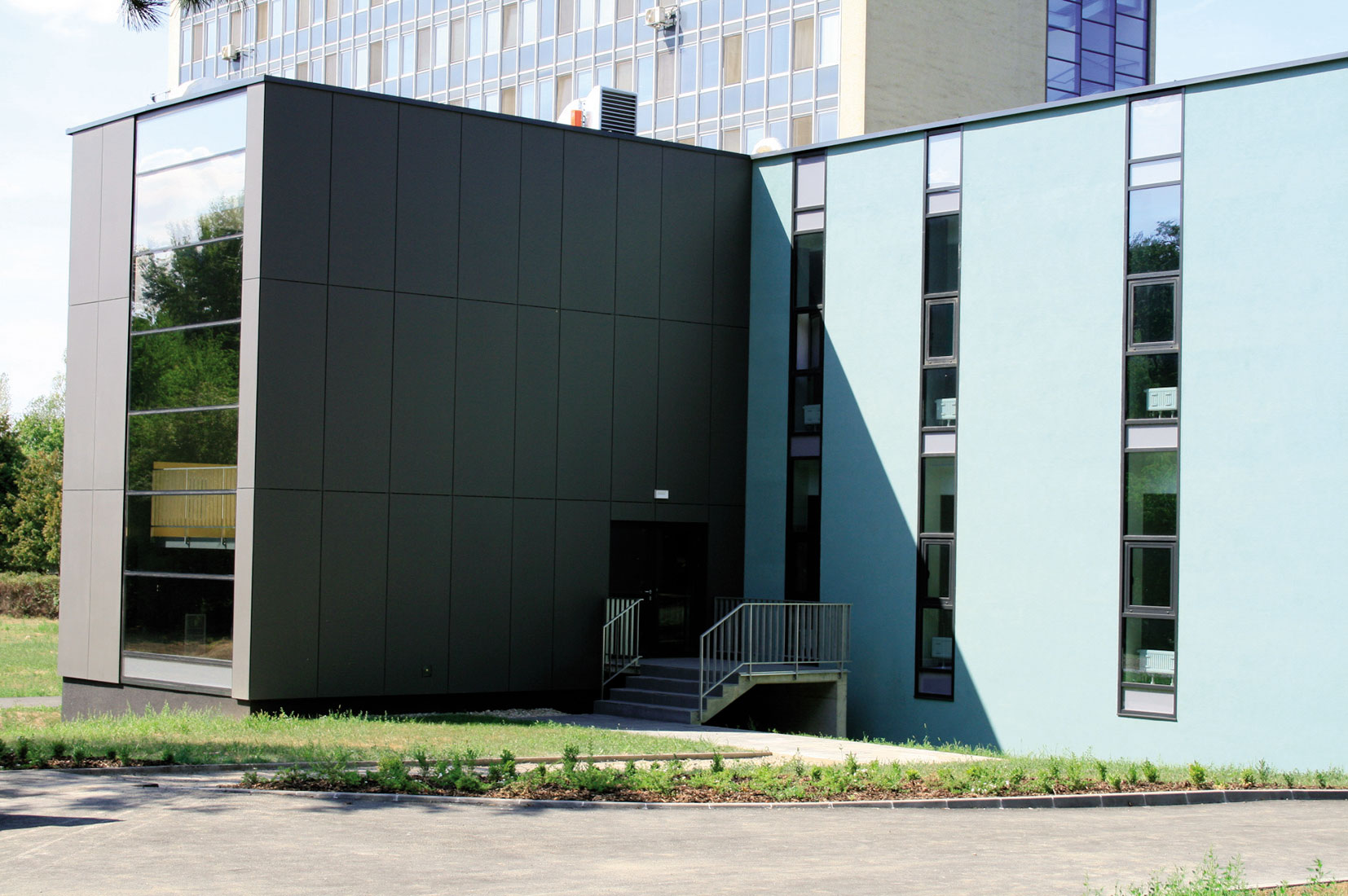 Realizáciu odvetranej fasády zabezpečila pre generálneho zhotoviteľa operačných sál (firmu Strabag) spoločnosť CDI, s. r. o. Fasádne panely majú textúrovaný povrch s 3D štruktúrou, čo dodáva nemocnici reprezentatívny výzor. Panely sú farbené v celej svojej hrúbke a napriek tmavosivej antracitovej farbe Swisspearl majú minimálnu rozťažnosť, nevybočujú a ani nepraskajú. K ďalším benefitom fasády patrí aj jej nehorľavosť a bezúdržbovosť. Štruktúrovaný povrch panelov umožnil použiť na kotvenie nity vo farbe panelov, čo vytvára zaujímavý vizuálny efekt.