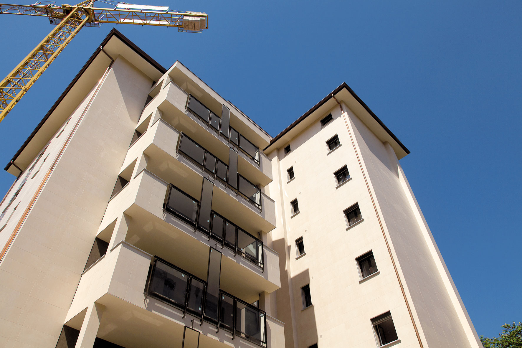 Nový apartmánový komplex bol postavený na mieste, kde už dávnejšie stáli objekty s fasádami pokrytými doskami z prírodného kameňa. Klienti a architekti nechceli príliš narušiť pôvodný vonkajší vzhľad a jednotnosť budov použitím iných materiálov. Z tohto dôvodu sa rozhodli využiť pri návrhu výhody tradičných tepelnoizolačných systémov v kombinácii s obkladovými prvkami. Mapetherm tile system sa jednoducho udržiava, je odolný proti nárazom a ako veľkoformátový obklad pôsobí na fasádach elegantne. Pri realizácii apartmánového komplexu v San Donato sa Mapetherm tile system aplikoval na celkovú plochu 1 300 m2. Na tejto stavbe navrhli architekti obkladové prvky vo formáte 1000 × 400 mm s dilatačným rastrom každých 9 m2 a so škárami minimálne 5 mm. Nevyhnutné bolo zamyslieť sa a vyvinúť podklad s vyššími mechanickými vlastnosti ako samotný tepelný izolant a s dostatočnou únosnosťou, keďže priamo naň mali byť nalepené obkladové prvky. Návrh Mapei zároveň spĺňa aj v súčasnosti platné prísne normy v rámci energetickej certifikácie budov.