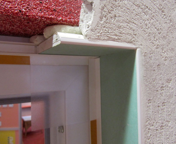 | Okenná lišta s integrovanou lepivou páskou | Prefabrikované ostenie rovná doska (detail) |