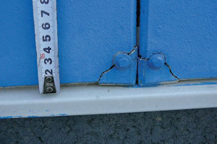 - praskaniu rohov, v krajoch obkladovej dosky (pri nízkom odstupe krajných kotiev od hrany, prípadne pri nedostatočnom predvŕtaní fasádnej dosky alebo použití nevhodného typu kotvy).