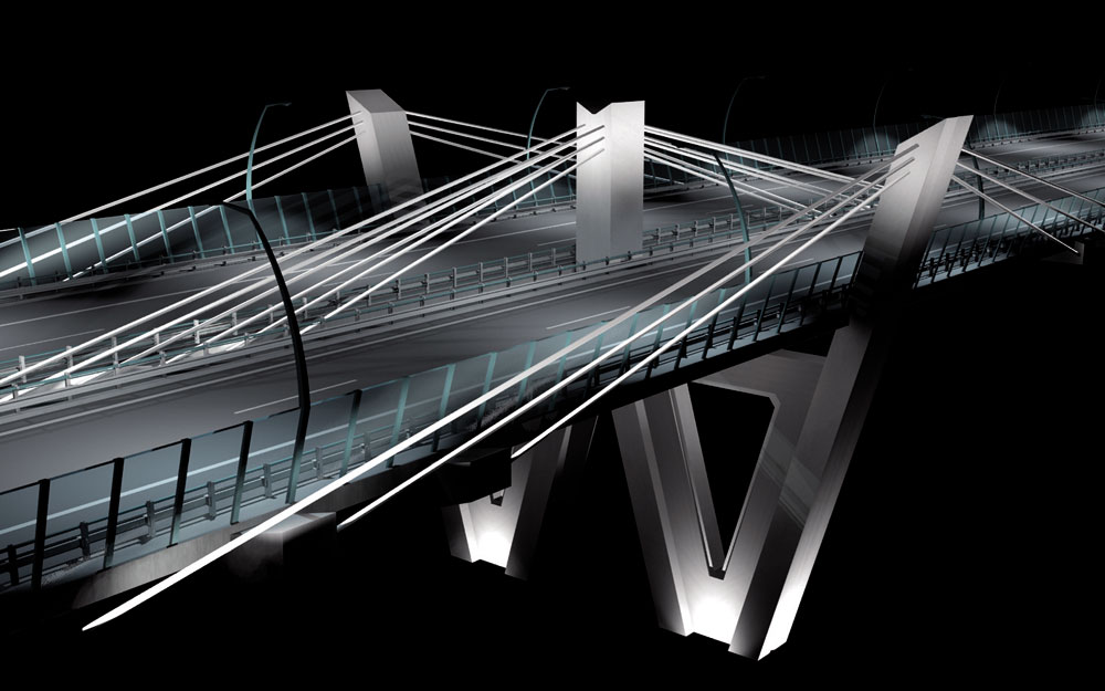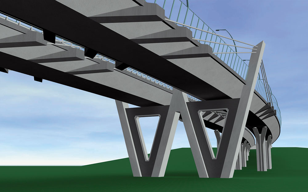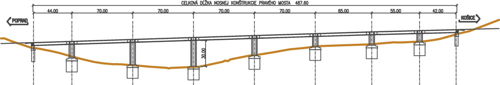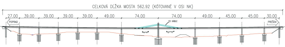 Keďže sa tento mostný objekt nachádza na najvyššej úrovni križovatky, bude tvoriť jej dominantný prvok. Zároveň je to aj najdlhší most v križovatke. Pod ním sa nachádzajú mostné objekty na vetvách diaľnice D1 a rýchlostnej cesty R4 a cesty prvej a druhej triedy. Celková dĺžka mostného objektu je 563 m. Tento most je dvanásťpoľový s rozpätiami polí 27 až 74 m. Most tvoria dve samostatné nosné konštrukcie, ktoré sú navrhnuté ako dvojkomôrkové so sklonenými vonkajšími stenami. V poliach č. 7 a 8 je situovaný najväčší počet vetiev križovatky. Výškovo a smerovo sú vedené tak, že je nutné ich premostiť dvoma poľami s dĺžkou 74 m, pri výške nosnej konštrukcie maximálne 2,3 m. Predmetné polia premosťujú tieto prekážky pomocou externých predpínacích káblov typu extradosed, ktoré budú deviované cez podperu č. 8 vo výške asi 10 m nad úrovňou nosnej konštrukcie. Káble typu extradosed (ED) sa ukotvia do šikmých rebier na nosnej konštrukcii. Rebrá sú našikmené proti osi nosnej konštrukcie na 50 gon tak, aby bol zabezpečený plynulý prenos síl z ED káblov do nosnej konštrukcie. Rebrá budú zároveň priečne predopnuté. Takýmto riešením sa nielenže dosiahne účel premostenia, ale sa aj zvýrazní dominantnosť mostného objektu. Spodná stavba pozostáva z dvoch krajných opôr a jedenástich medziľahlých podpier. Opory sú navrhnuté ako úložné prahy založené na veľkopriemerových pilótach. Medziľahlé podpery sú navrhnuté v tvare písmena V, čo ďalej rozvíja trojuholníkový motív použitý v križovatke Prešov-západ. Podpera č. 8 (spoločná pre obe nosné konštrukcie) bude tvoriť výrazný prvok, a to nielen tvarovaním (v tvare písmena W), ale najmä svojimi rozmermi. Je vysoká necelých 30 m a v jej hornej časti sú cez ňu deviované káble typu extradosed.