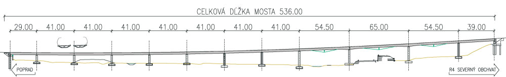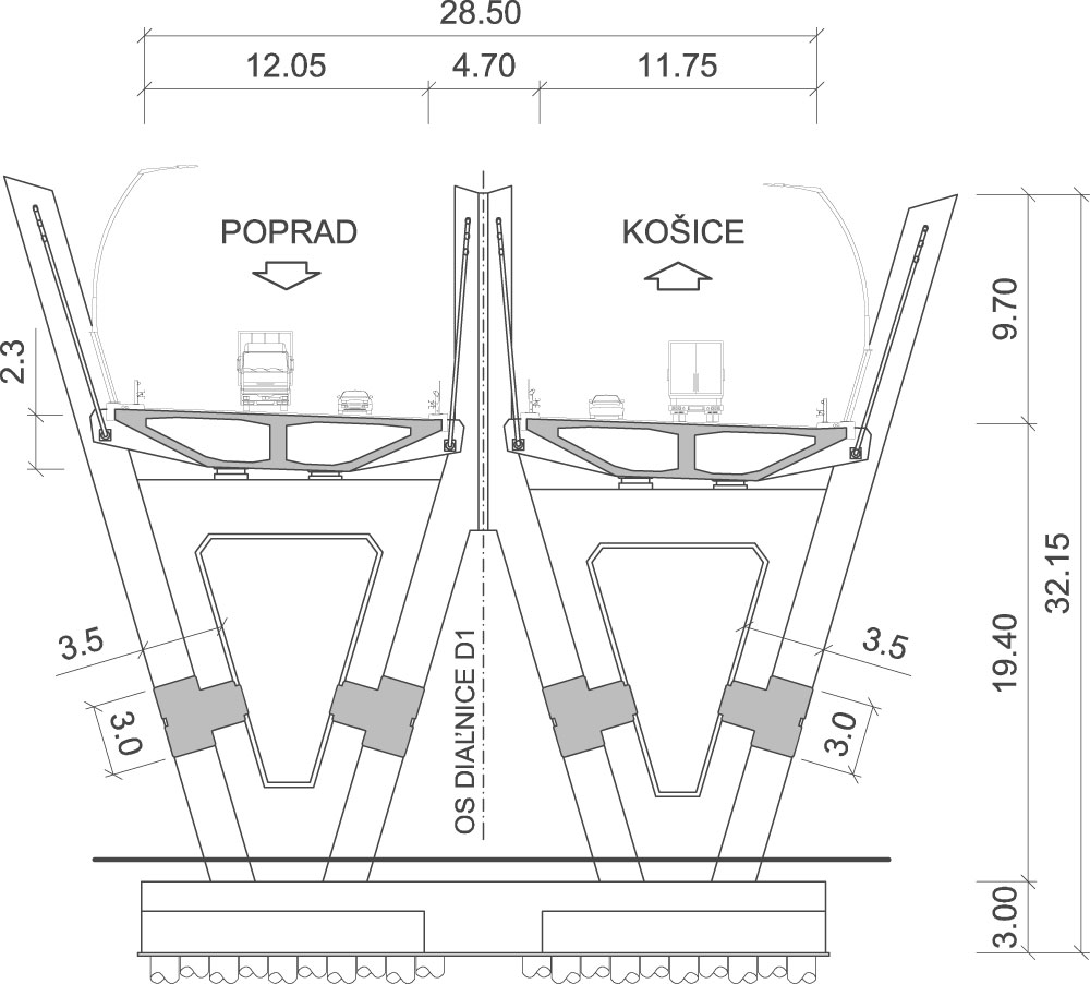 Mostný objekt sa nachádza na diaľnici D1. Je navrhnutý z monolitického predpätého betónu. Most tvoria dve samostatné nosné konštrukcie, ktoré sú navrhnuté ako komôrkové a budú sa budovať technológiou letmej betonáže. Most je osempoľový s rozpätiami polí 42 až 70 m. Celková dĺžka mostného objektu je 488 m a výška nad terénom 35 m. Nosná konštrukcia je uložená na medziľahlé podpery prostredníctvom vrubových kĺbov. Na oporách je uložená na ložiská. Podpery mosta sú navrhnuté ako dvojica štíhlych stien, ktoré budú zároveň slúžiť na stabilizáciu vahadla.