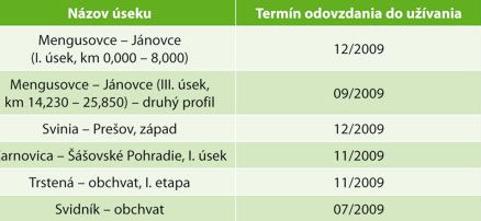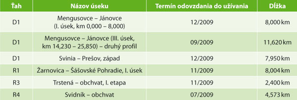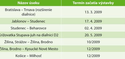 Na stavbách, ktoré sa majú odovzdať budúci rok, sa pracuje naplno, pričom najdôležitejšou je pre nás stavba D1 cez Považskú Bystricu. Našou prioritou je dokončiť jej výstavbu čo najskôr, ukončenie v termíne máj 2010 vidím reálne. V budúcom roku chceme odovzdať do užívania aj úsek Žarnovica – Šášovské Podhradie, II. časť. Termín je november 2010, hľadáme však možnosti, ako výstavbu urýchliť.