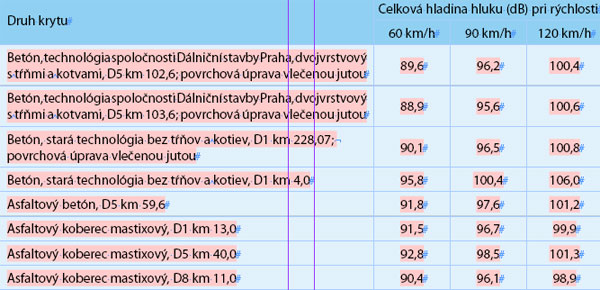 Po prvé, mýtus o hlučnosti je založený na skúsenostiach s vozovkami, ktoré patria skôr do múzea než do súčasnej cestnej siete. Pri zaistení rovnosti škár a úpravy povrchu vlečenou jutou je hlučnosť na vozovke s cementobetónovým krytom porovnateľná s hlučnosťou na asfaltových krytoch (tab.) [1].