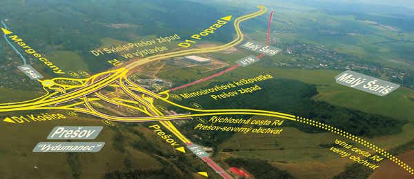 Pohľad na mimoúrovňovú križovatku Prešov-západ