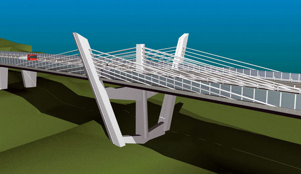 Výškovo a smerovo sú vedené tak, že ich treba premostiť dvoma poľami dĺžky 78 m, pri výške nosnej konštrukcie maximálne 2,3 m. Spomínané polia premosťujú tieto prekážky pomocou externých extradosedových káblov, ktoré budú kotvené vo výške 8 m nad úrovňou nosnej konštrukcie. Týmto riešením sa nielenže dosiahne účel premostenia, ale sa zvýrazní aj dominantnosť mostného objektu.