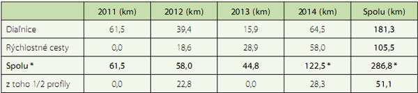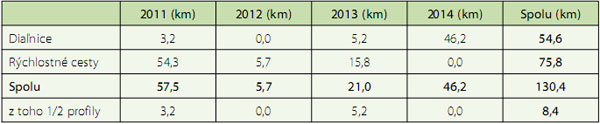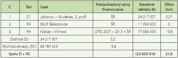 Tab. 2 Sumár plánovaných úsekov na začatie v rokoch 2011 – 2014