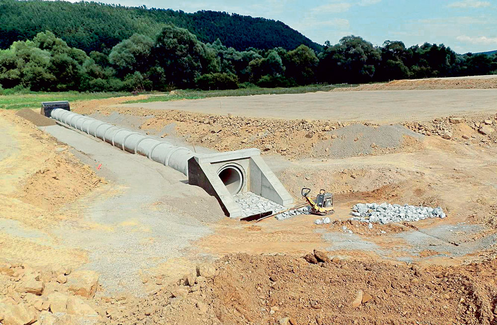 Do konca augusta 2012 sa uložilo celkovo 200 000 m3 zeminy v násypoch budovaných sendvičovým spôsobom. K budovaniu zemného telesa patrí aj budovanie rúrových a rámových priepustov, ktorých je na stavbe spolu 12 kusov v celkovej dĺžke viac ako 390 m.