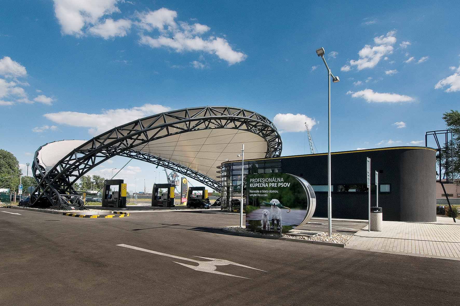 Základnou myšlienkou bolo vytvoriť modernú a ekologickú čerpaciu stanicu, ktorá by okrem všetkých funkčných požiadaviek napĺňala aj estetické kritériá.