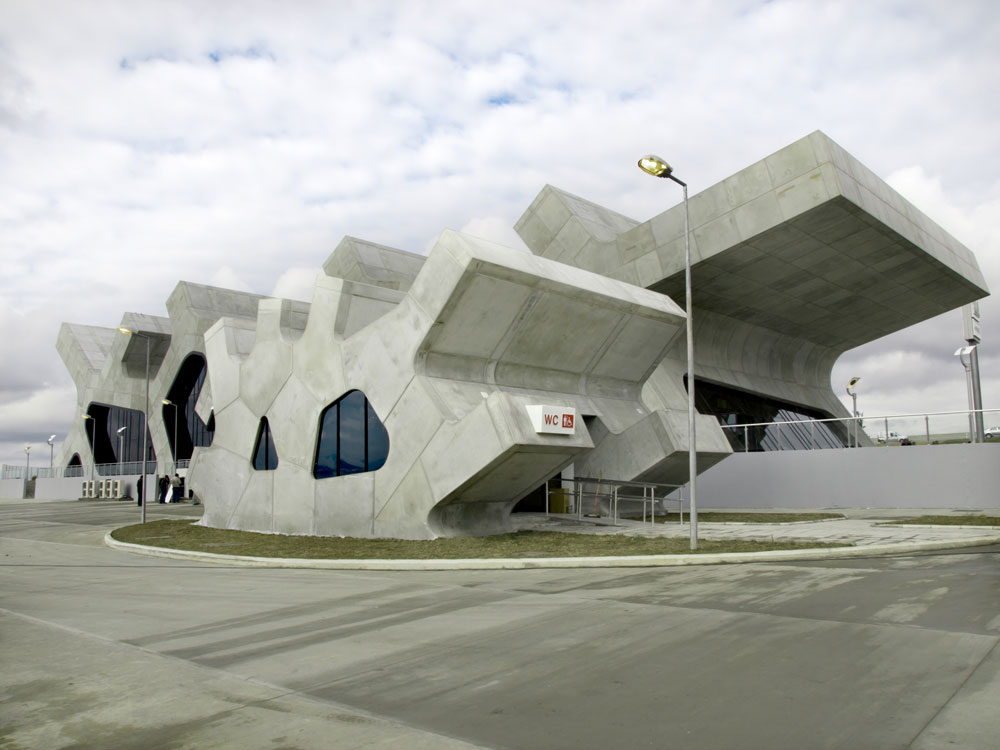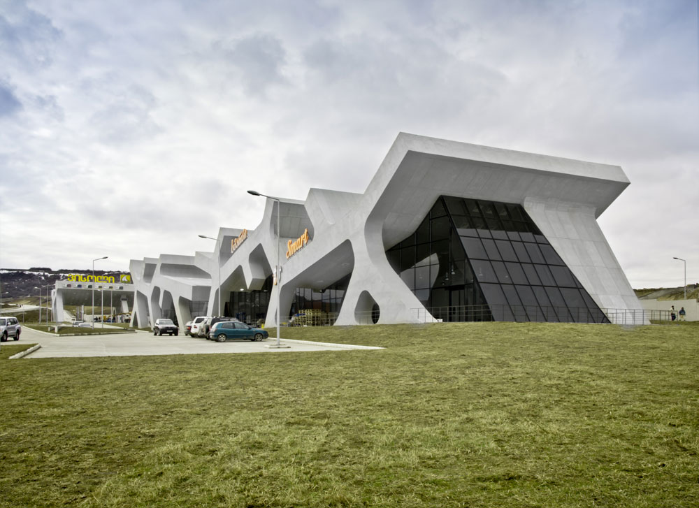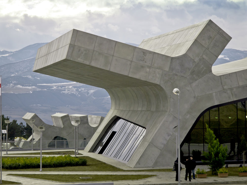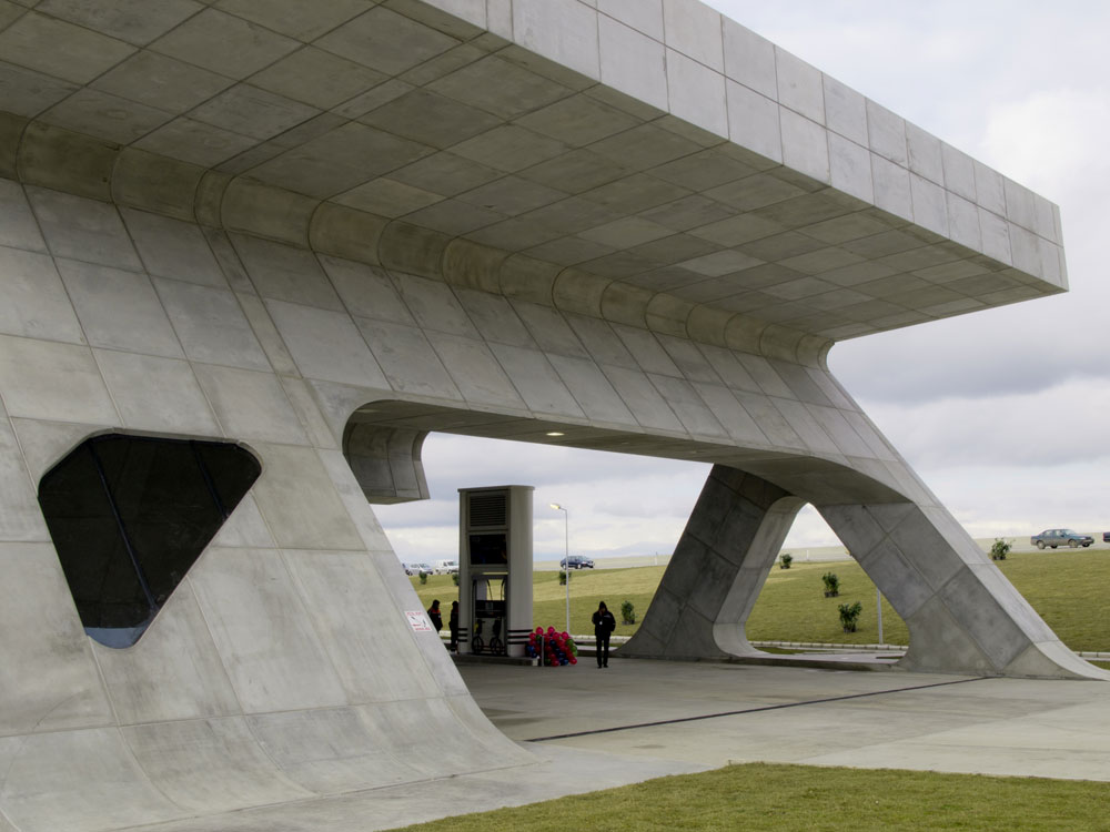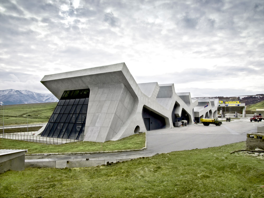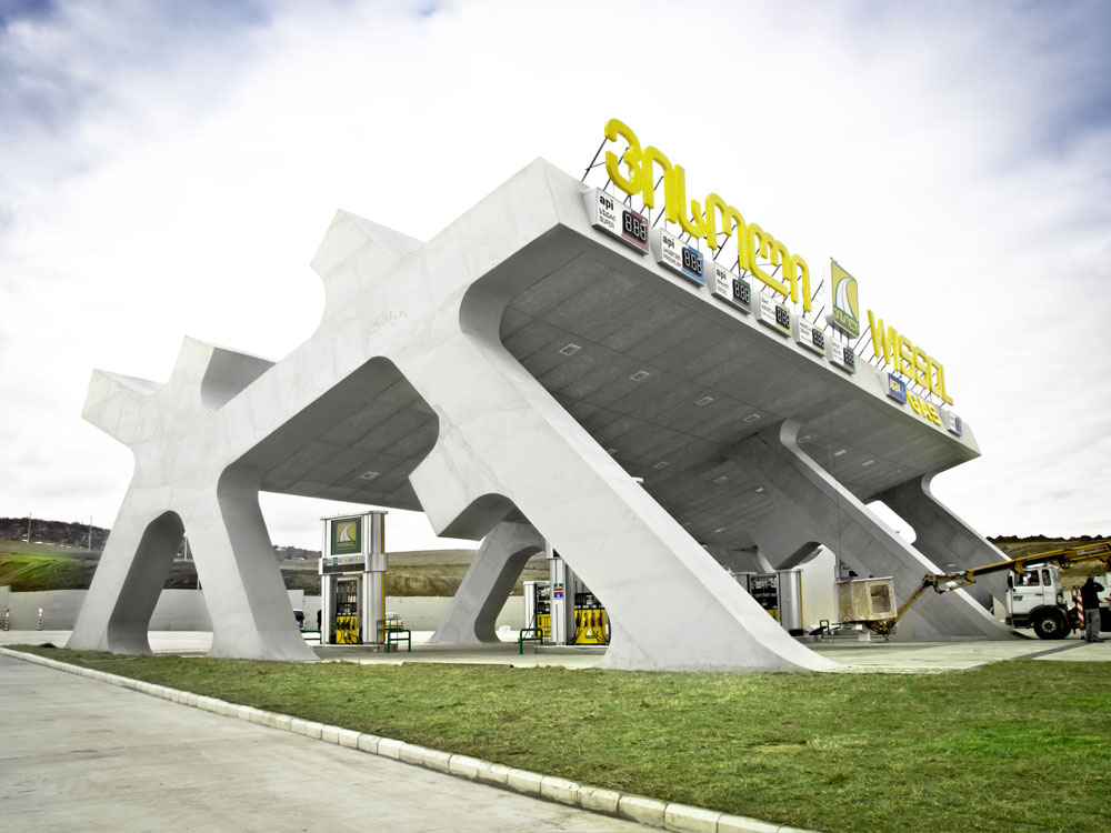 Nemecký ateliér J MAYER H. Architects je už v Gruzínsku dobre etablovaný. Berlínčania tu už stihli postaviť futuristické letisko, hraničný prechod, kultúrne centrum i policajnú stanicu. Projekt na dvadsať diaľničných odpočívadiel vznikol v roku 2009 na objednávku gruzínskeho štátu. Rozmiestenie jednotlivých stavieb je určené nielen okolitou krajinou, ale aj blízkosťou miest, pretože odpočívadlá nemajú slúžť iba cestujúcim, ale fungovať aj ako aktivátory danej lokality. Pod masívnymi betónovými konštrukciami tak nenájdete iba čerpaciu stanicu a obchod, ale aj farmársky trh či priestory na kultúrne akcie.