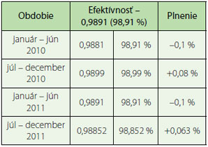 V prvom polroku 2011 (podobne ako v prvom polroku 2010 o 0,1%) sa nedosiahla zmluvne dohodnutá efektívnosť výberu mýta (0,9891, t. j. 98,91 %) o 0,058 % (t. j. 0,98852, respektíve 98,852 %). V druhom polroku sa efektívnosť výberu mýta dosiahla a prekročila o 0,063 % (t. j. 0,98973, respektíve 98,973 %).