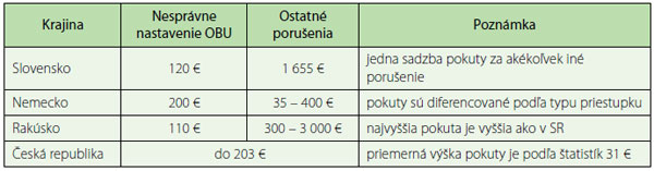 Tab. 5 Porovnanie pôvodných pokút na Slovensku a ďalších krajinách prevádzkujúcich elektronický výber mýta