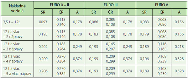 V porovnaní sadzieb pre nákladné vozidlá má Slovensko najnižšie sadzby pri menej ekologických vozidlách (EURO 0 – III) v kategóriách 3,5 t – 12 t a 12 t a viac s minimálne štyrmi nápravami. Naopak, najvyššie sadzby má Slovensko v kategórii 12 t a viac s dvoma nápravami, a to bez ohľadu na emisné triedy. V ostatných kategóriách sú slovenské sadzby mýta spravidla vyššie ako základné sadzby mýta v Českej republike, ale zároveň nižšie ako v Rakúsku. Štruktúra rozdelenia vyplýva predovšetkým z toho, že slovenské sadzby mýta nie sú diferencované v takej miere podľa počtu náprav a podľa emisných tried, ako je to v Českej republike a Rakúsku. V tejto súvislosti treba uviesť, že vozidlá v kategóriách s najnižšou sadzbou na Slovensku zaplatili v prvých dvoch rokoch prevádzky (2010 a 2011) 55,3 % celkového objemu mýta, zatiaľ čo vozidlá s najvyššími sadzbami na Slovensku zaplatili len 5,7 % z celkového objemu mýta.