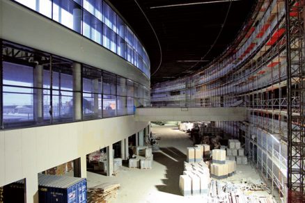Na prvom poschodí sa sústreďujú odlety do krajín v rámci schengenskej zóny, na druhom prílety a na treťom odlety do krajín ležiacich mimo schengenskej zóny. Aj stavebný interiér sa riešil v duchu jednoduchého, ale pôsobivého konceptu. Významnú úlohu tu zohráva sklo – biele matné sklo v interiéri a čierne sklo na fasáde objektu. Biele sklo sa použilo na dosvetľovacích svetlíkoch prechádzajúcich všetkými podlažiami, aj na členenie jednotlivých chodieb a funkčných zón. Nástupné lávky k lietadlám sa pozdĺžne delia prebiehajúcou sklenenou stenou, ktorá prechádza z bielej do čiernej farby.