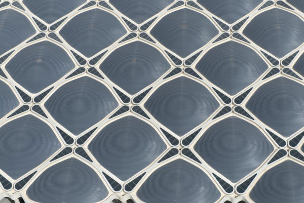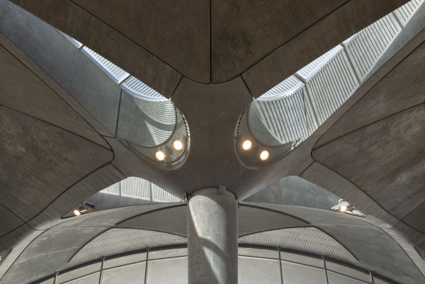 V Ammáne sú veľké rozdiely medzi dennými a nočnými teplotami, preto je budova letiska postavená predovšetkým z betónu. V priebehu dňa udrží chlad lepšie ako ostatné materiály. Interiér letiska je klasicky otvorený a vďaka veľkým zaskleným plochám je odvšadiaľ výhľad na letiskovú dráhu i okolie. Aby nedochádzalo k prehrievaniu, betónová strecha výrazne presahuje pôdorys budovy a tieni tak zasklenú fasádu. Práve strecha je najzaujímavejším prvkom celej letiskovej budovy. Je mozaikou poskladanou z betónových kupol, pričom každá z nich predstavuje modulovú jednotku výstavby. Práve tento modulový systém má umožniť jednoduché plánované rozšírenie letiska. Geometria betónových kupol bola starostlivo vyvinutá priamo v kanceláriách Foster+Partners a odkazuje na tradičný islamský motív palmových listov. Najvýraznejšie je to pri napojení na podporné betónové stĺpy.Queen Alia International Airport, Ammán, Jordánsko