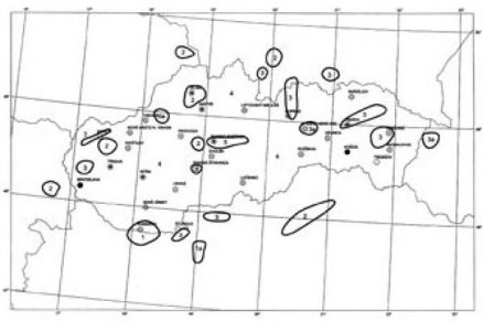 Obr. 5 Zdrojové oblasti seizmického rizika na území Slovenska a v jeho okolí [6]