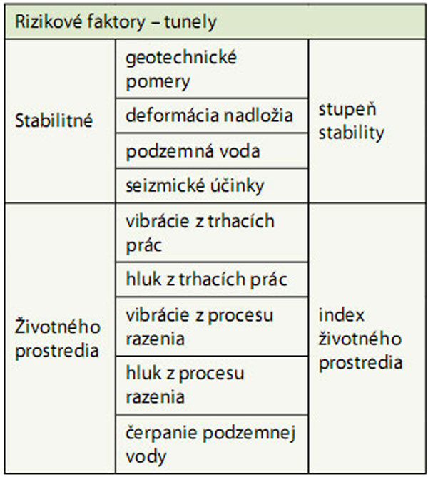 Faktory hodnotenia rizík sa rozdeľujú do dvoch skupín – stabilitné a faktory životného prostredia (ekologické). V tab. 1 sú uvedené niektoré z nich.