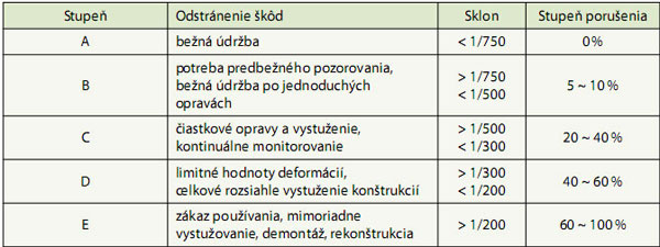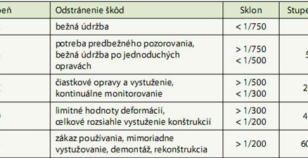 Tab. 3 Kritériá hodnotenia deformácií a pomerných deformácií